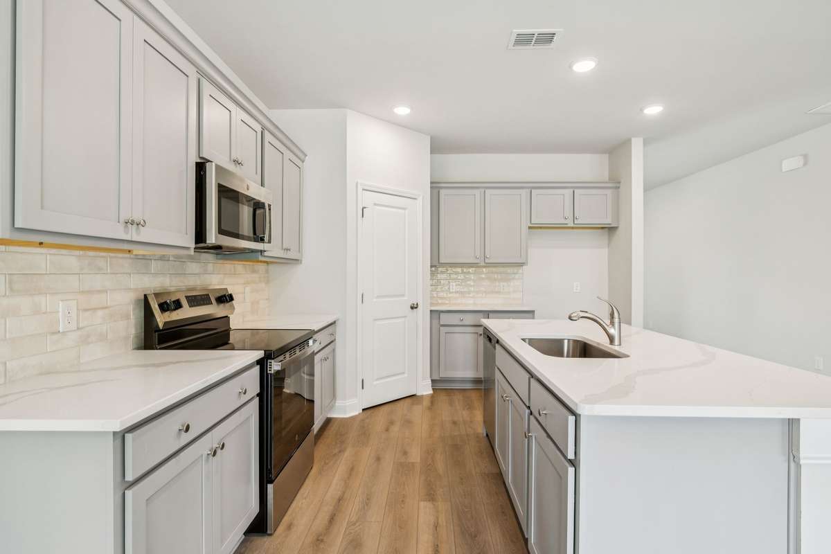 Homesite # 113 - " The Bartlett" - Create memories when you step inside the five- bedroom Bartlett plan. This two- story home features a versatile flex room off the foyer, a covered patio off the dining area, and a bedroom on the main level ideal for guests. The open, designer- curated kitchen overlooks the spacious living room and features professional curated design finishes. Here, you' ll find gorgeous cabinetry, pristine quartz countertops, tile backsplash, and stainless appliances. On the second floor, a large loft area offers space for a media room, play room, or home office. The primary suite has a generous walk- in closet, tiled walk- in shower, and a dual vanity. Upgrades include tray ceiling in the owners suite, and a covered patio. Three secondary bedrooms, a full bathroom, and a laundry room with storage closet complete the second floor. Ask listing agent about current incentives. Photos are of the same floorplan on a different homesite. Design Choices may differ.