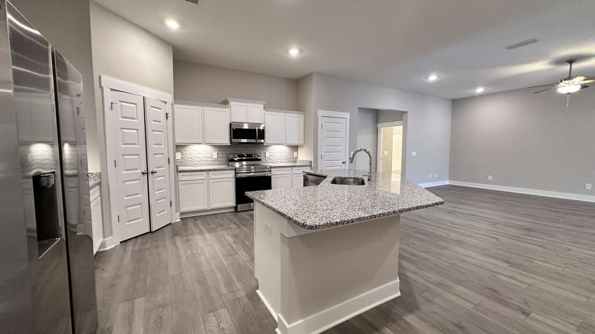 File photo, New plan, 2 bedroom & 2 bath,Florida room, great room/kitchen, huge fenced patio, Blinds, stainless pkg/refrigerator, huge island/kitchen, Tile backsplash, under cabinet lighting, Owners 5ft Tile shower/glass door, laminate/carpet/tile!