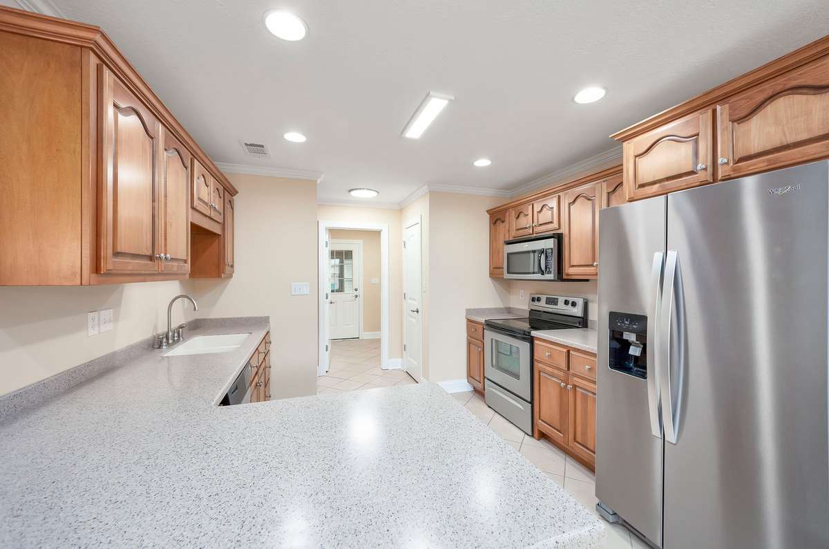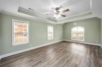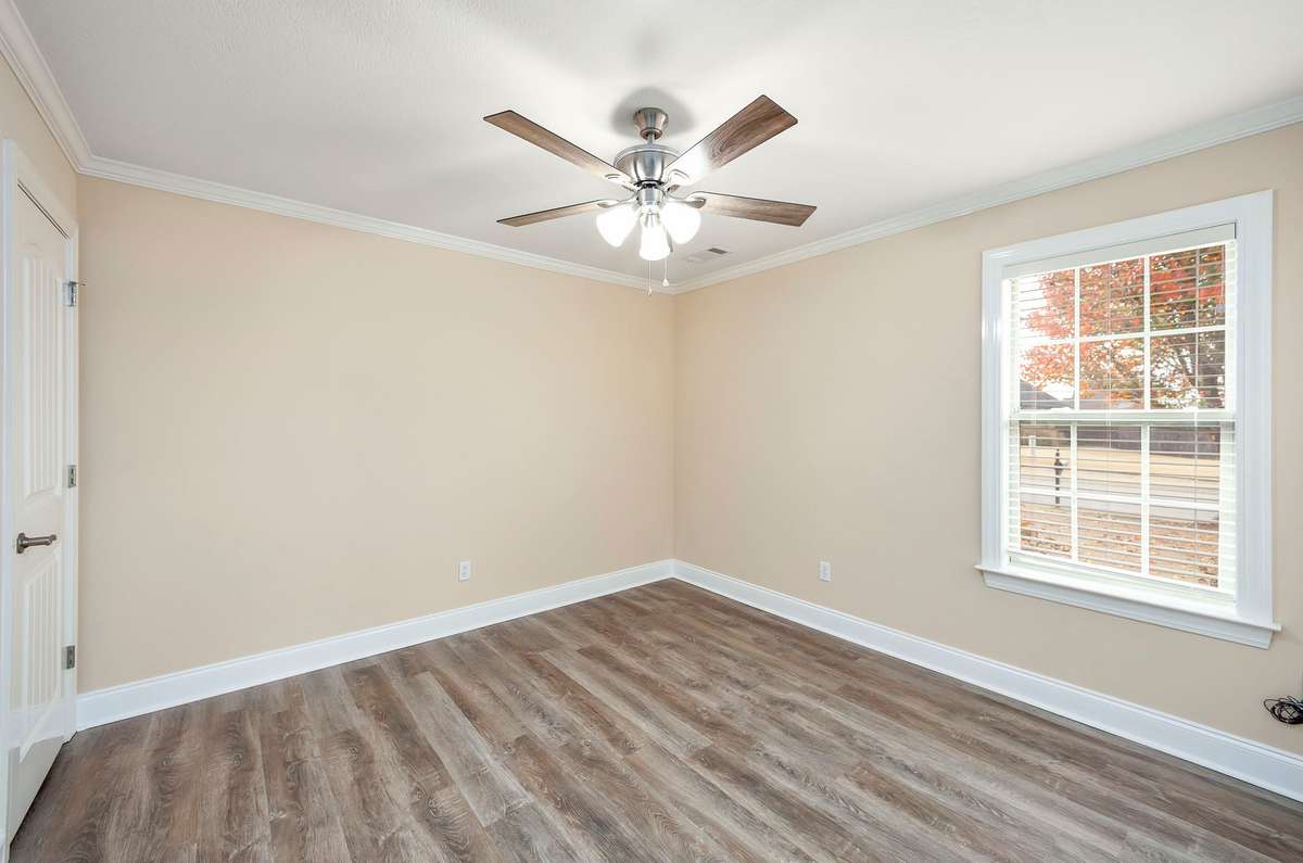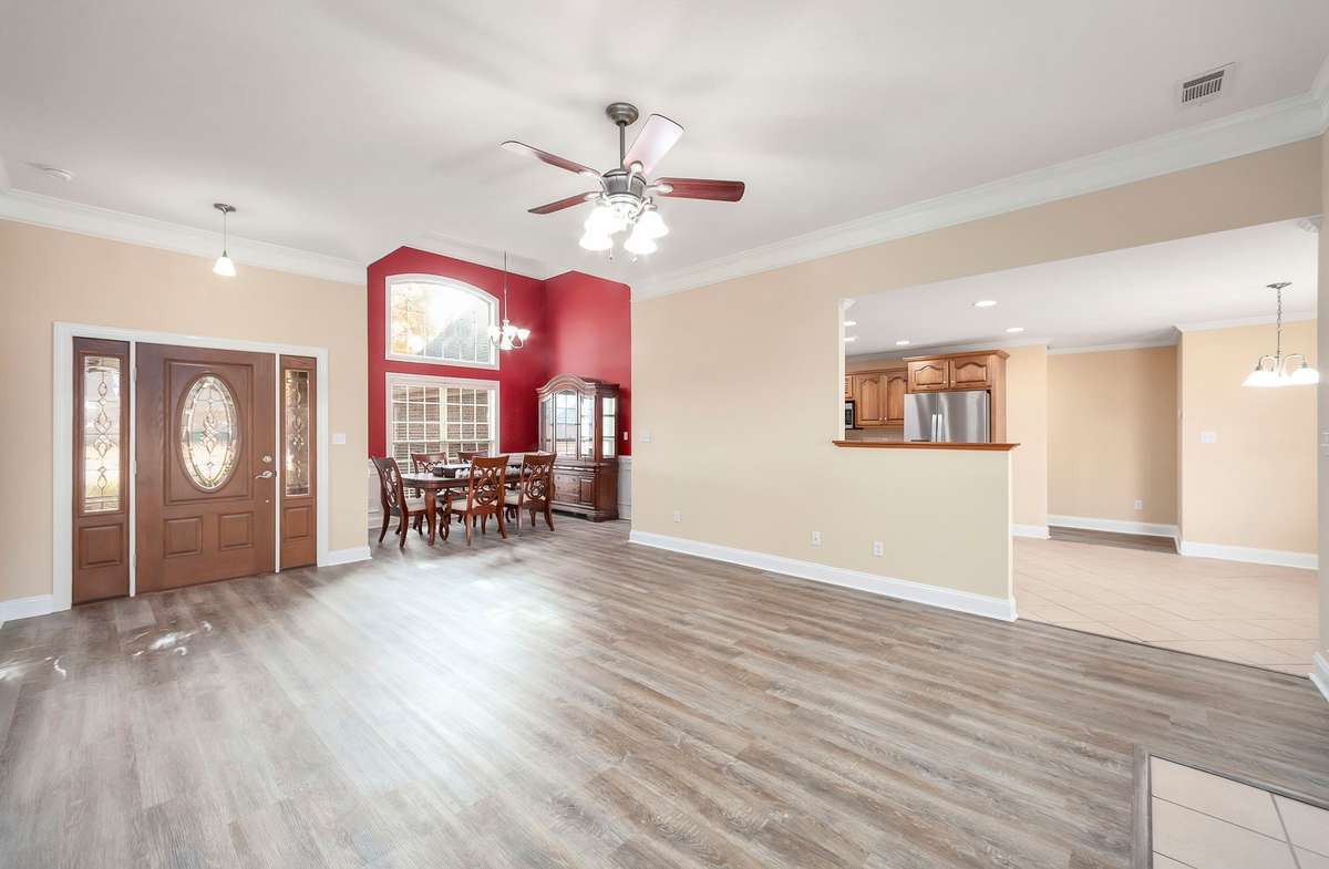 Discover easy living in this beautifully maintained all- brick home, designed for comfort and style. Step inside to an inviting open- concept layout where natural light pours in and a cozy fireplace serves as the heart of the spacious living room. The home shines with luxury vinyl flooring throughout, sleek stainless- steel appliances, and a bright breakfast nook that flows seamlessly from the kitchen. Host elegant dinners in the formal dining room or enjoy quiet mornings on the generous covered rear patio — perfect for year- round outdoor relaxation. Retreat to the serene primary suite featuring a dramatic tray ceiling, a spa- like ensuite bath with a separate walk- in shower, luxurious jetted Jacuzzi tub, and dual vanities. Move- in ready, effortlessly stylish, and built to last — this home checks every box for relaxed, low- maintenance living. Schedule your private tour today!