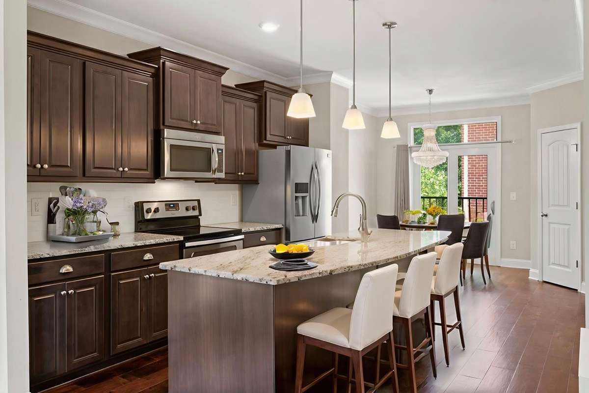 Modern Midtown living meets effortless charm in this quiet, corner- lot end unit just steps from Centennial Park. Sunlight fills the main level, where hardwood floors, classic trim, and an easy, open flow create a welcoming backdrop for both relaxing and entertaining. The kitchen serves as the heart of the home with granite countertops, stainless- steel appliances, rich cabinetry, and an oversized island that opens into the dining and living spaces. Multiple Juliet balconies throughout invite fresh air and offer peaceful views of mature trees, giving the home a calm, tucked- away feel despite its central location. The dining area is accented by a statement light fixture and large windows, while the spacious living room offers flexibility for your ideal layout. Upstairs, the private owner’s suite features its own balcony, a tray ceiling, a generous walk- in closet, and a spa- inspired bath with a double granite vanity and tiled shower with a built- in bench. A stylish powder room on the reception level adds convenience for guests, and the one- car garage — accessed via a charming paver- lined courtyard — brings everyday ease. Thoughtfully maintained landscaping surrounds the property and enhances its curb appeal. With trails, gardens, gathering spaces, and the iconic Parthenon just a short stroll away, Centennial Park truly feels like an extension of the neighborhood. This is a rare opportunity to enjoy comfort, walkability, and Nashville living at its most convenient.