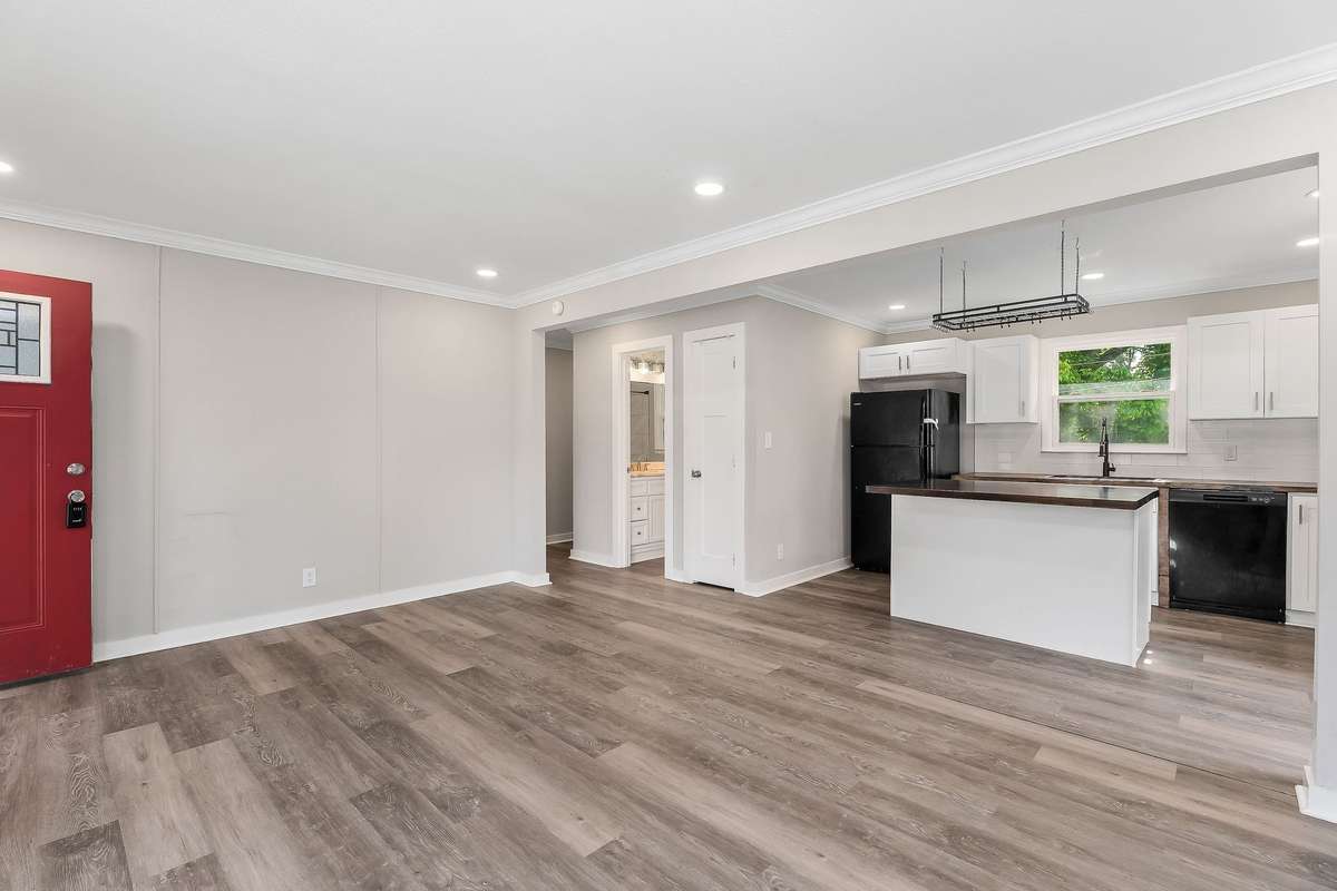 This fully renovated 3- bedroom, 2- bathroom home is located within the Smithville city limits. Renovated in 2022, the home features an open- concept layout with updated HVAC and ductwork, new windows, crown molding, and a beautifully tiled walk- in shower. The kitchen has been upgraded with new cabinets and finishes.