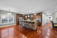 Open Living Room with Vaulted Ceilings and Gas Fireplace