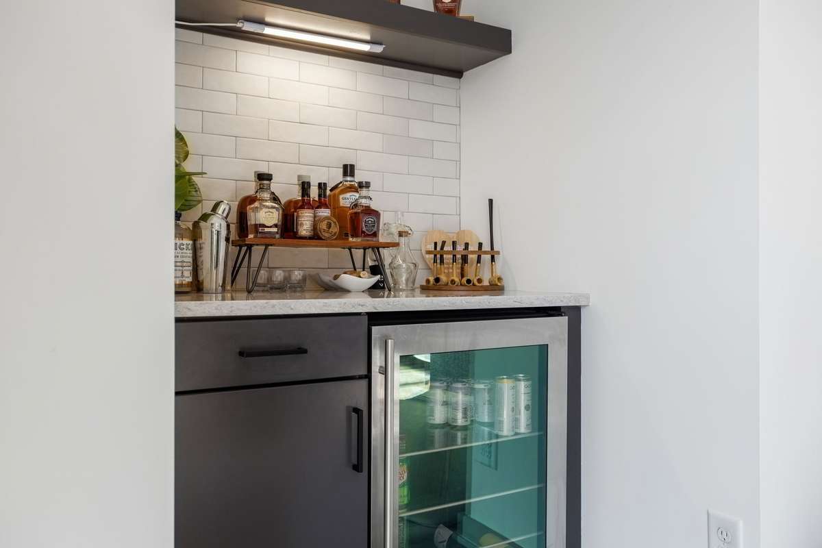 Inside, you' ll benefit from the nearly- new construction, light- filled living area, custom built- in closet, custom bar, office nook and top notch finishes. Lock- and- leave when you travel, or just enjoy the luxury of not spending weekends on exterior maintenance and yard work.