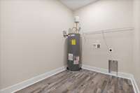 The primary suite is designed for full relaxation. With tray ceilings, a walk- in closet, and a spa- like bathroom that includes a custom tiled walk- in shower and dual granite vanities.