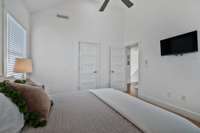 The primary suite is a true retreat, complete with a custom designer closet system offering both function and boutique- style elegance. Thoughtful craftsmanship, architectural drama, and natural light converge to create a home that is as practical for everyday living as it is stunning for entertaining.