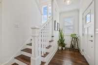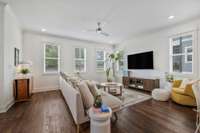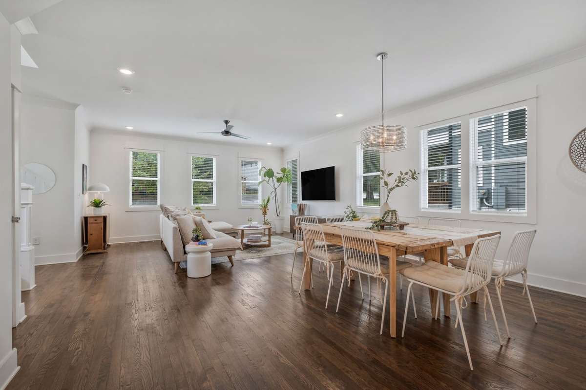 This one- of- a- kind residence stands apart with a wider footprint and expanded window design, flooding the home with natural sunlight and creating a bright, airy ambiance rarely found in new builds. Every detail was curated, from the real sand- and- finish hardwoods underfoot to the soaring vaulted ceilings upstairs that elevate the sense of space and grandeur.