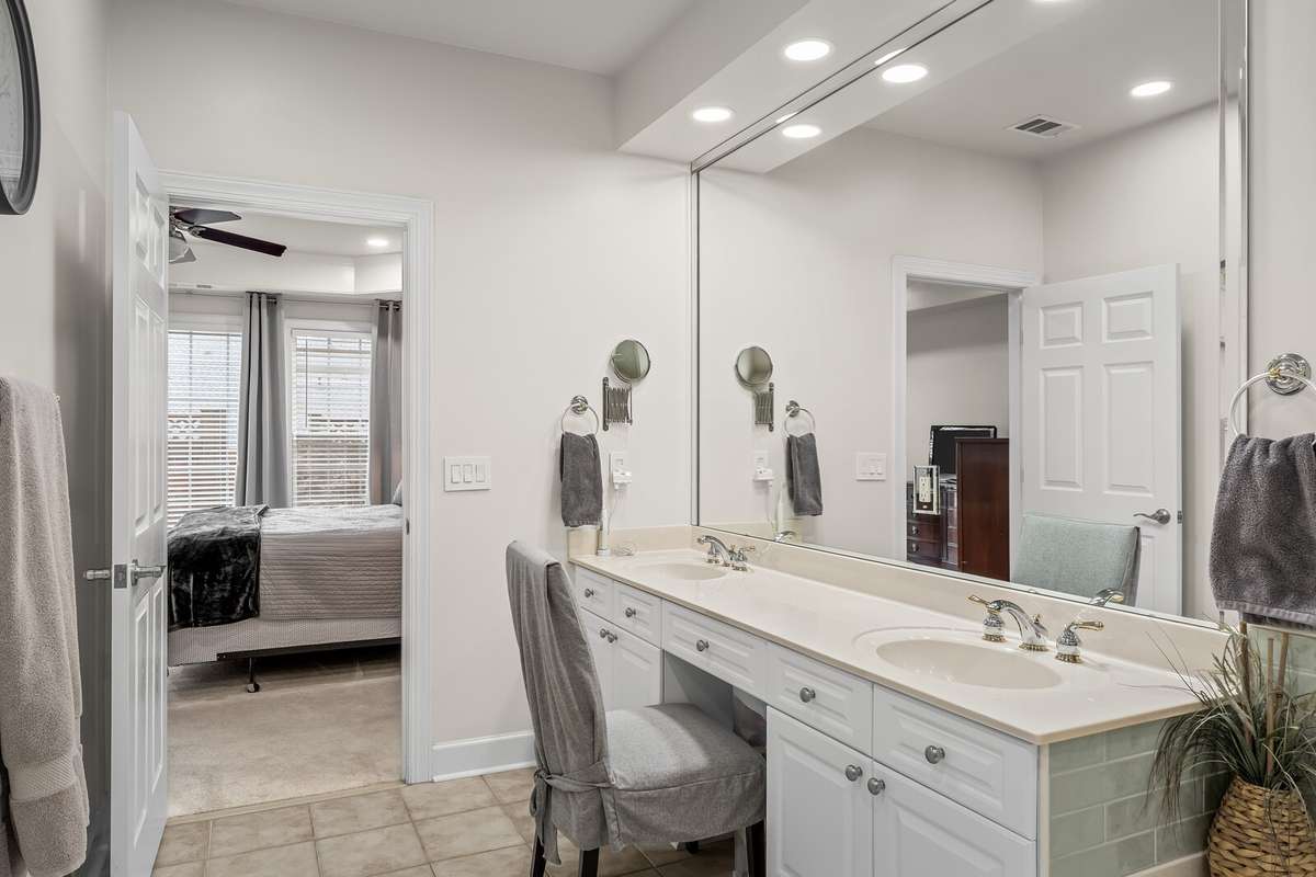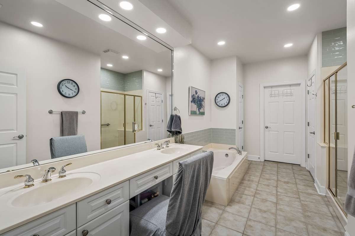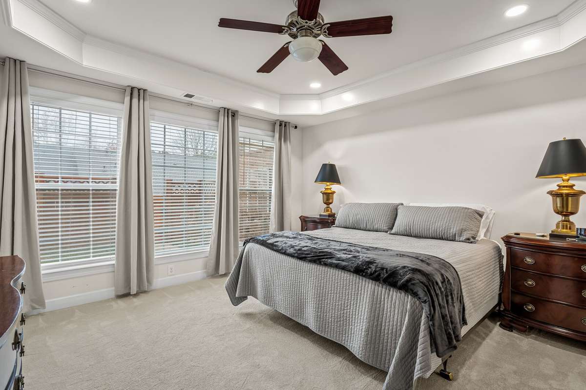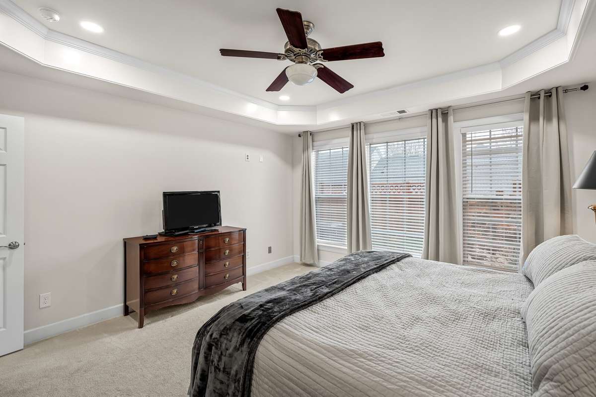 This elegant all- brick townhouse is filled with natural light from tall windows and showcases fresh updates throughout. The primary suite on the main level offers convenience and comfort, enhanced by a trey ceiling and a wall of windows. The primary bath features double vanities, a soaking tub and walk in closet. It also offers accessible features including a walk- in shower, grab bars, and easy entry.