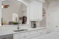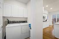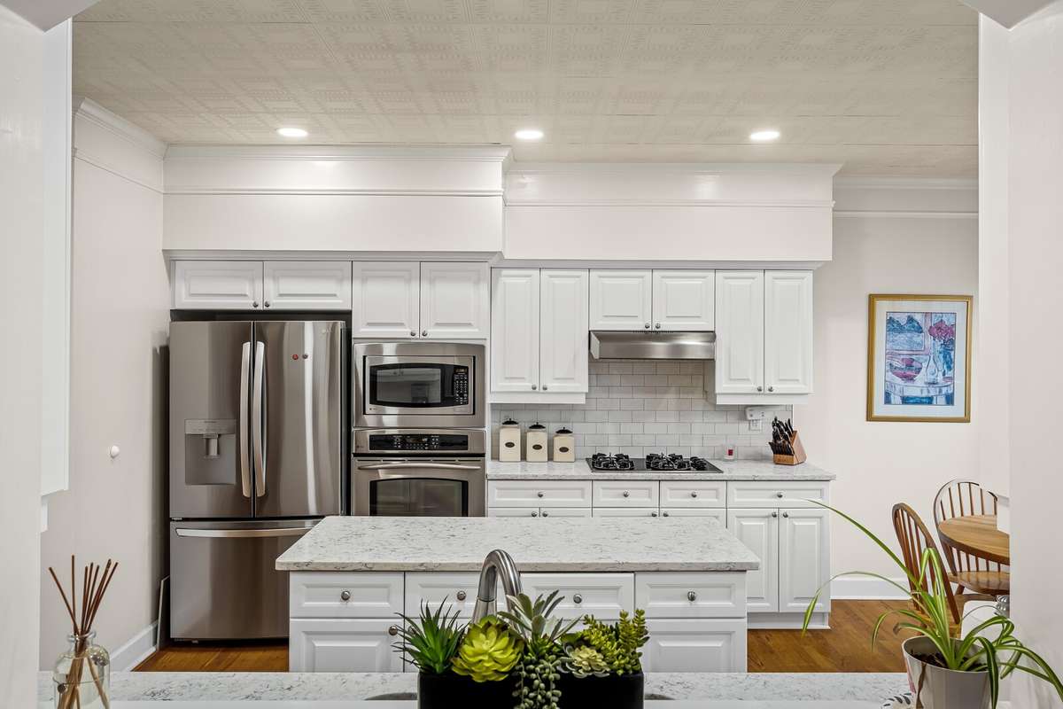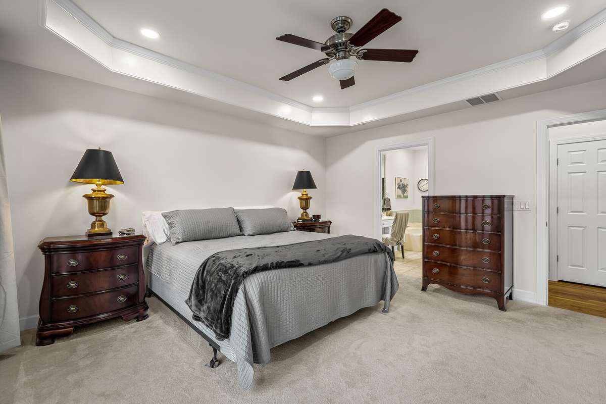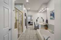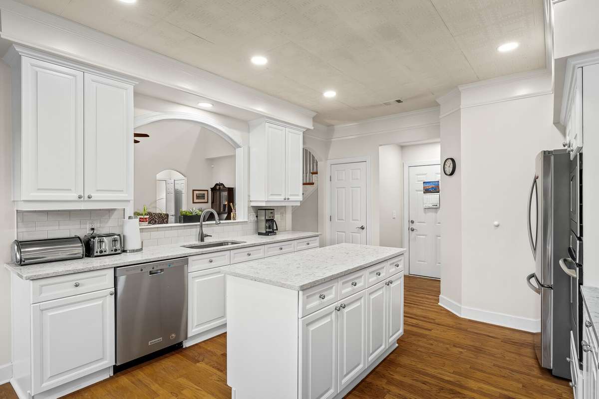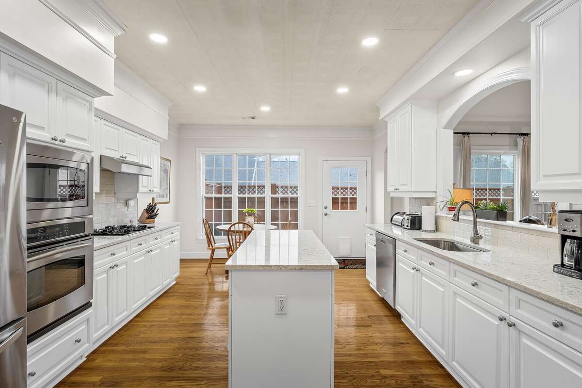 This elegant all- brick townhouse is filled with natural light from tall windows and showcases fresh updates throughout. The primary suite on the main level offers convenience and comfort, enhanced by a trey ceiling and a wall of windows. The primary bath features double vanities, a soaking tub and walk in closet. It also offers accessible features including a walk- in shower, grab bars, and easy entry.