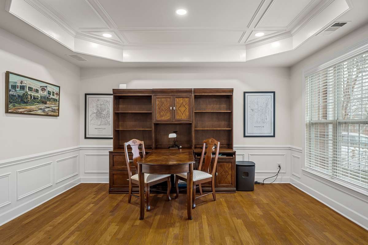 Enjoy a welcoming two- story foyer and hardwood floors that flow through the spacious living areas. The kitchen is a chef’s delight with painted white cabinets, stainless steel appliances, quartz countertops, a large island, and a walk- in pantry. The cozy gas fireplace anchors the living room, perfect for relaxing or entertaining. The home features hardwood floors throughout, new neutral paint throughout and new recessed lighting, giving it a bright, modern feel. Upstairs, you’ll find generous secondary bedrooms, guest bathroom with a shower/ tub combo, a cozy open loft area and large walk- in storage. Step outside to your private fenced patio—ideal for morning coffee or evening gatherings. The formal dining room is currently being used as an office, offering flexibility for your lifestyle needs. Enjoy low- maintenance living in a prime Franklin location, close to shopping, dining, and top- rated schools.