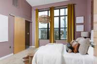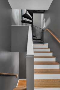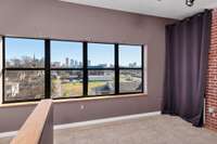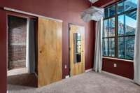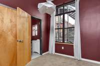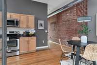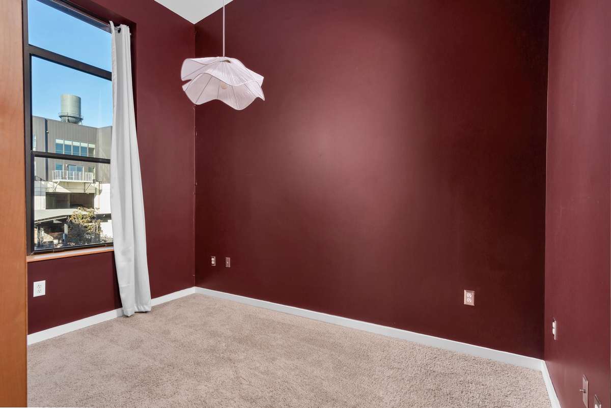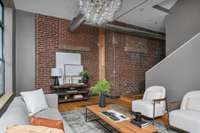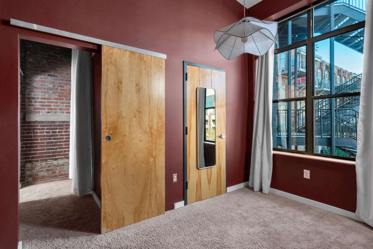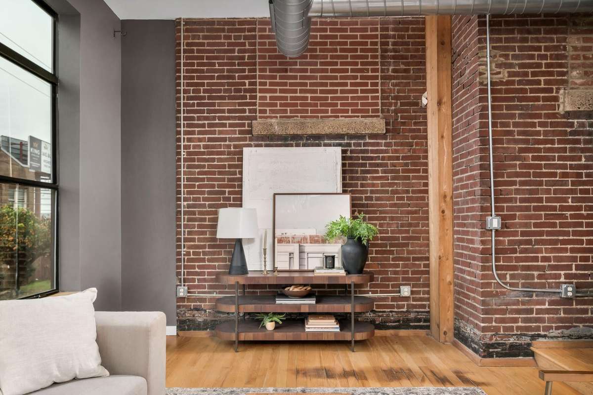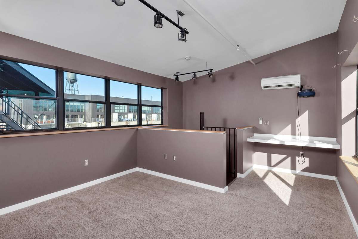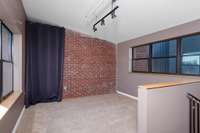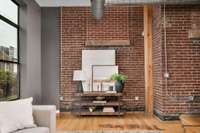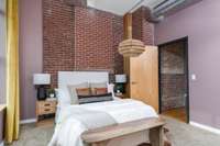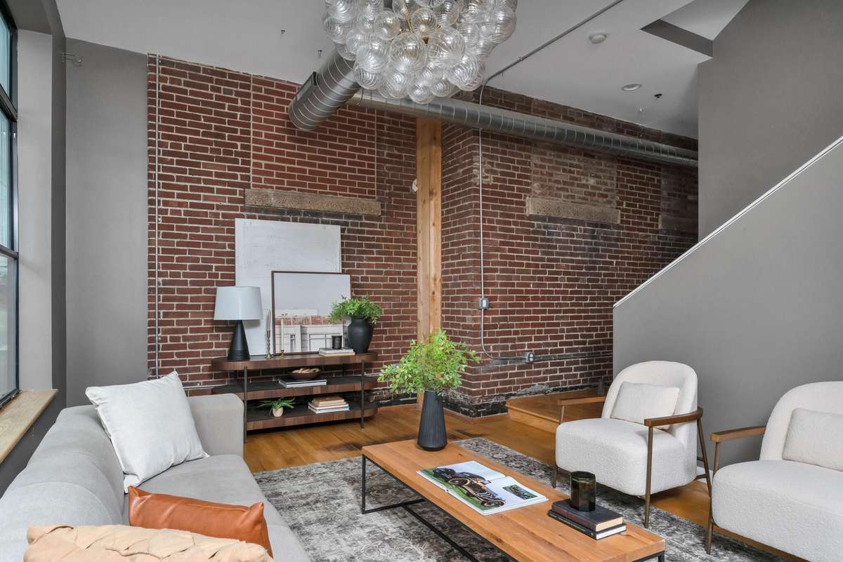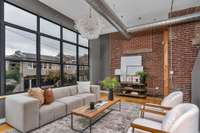 This three- level home features tall ceilings, oversized windows, and an abundance of exposed brick, made possible by its direct connection to the original 19th- century factory structure, unlike the other four townhomes. The main level features an eat- in kitchen and a living room with a wall of windows, while the second floor includes two spacious bedrooms, both with ensuite baths and generous closets. The top level is a flexible loft- style third bedroom or creative studio space with inspiring light.