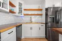 Pantry shelving and small appliance storage. Washer/Dryer hookups.