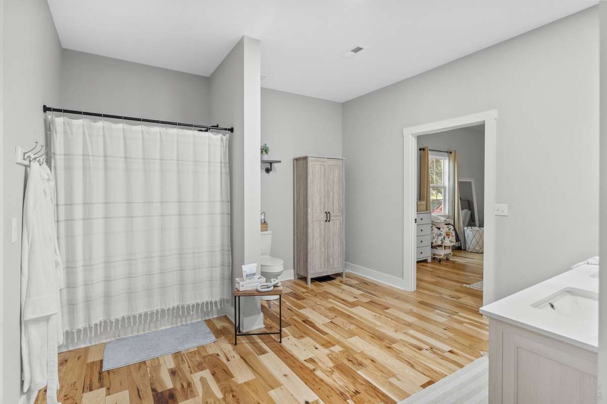 The remodel brought all the big improvements you want in a move- in ready home: updated HVAC, plumbing, 200- amp electrical service, roof, siding, insulation, windows, and doors. Inside, you’ll find rich Brazilian walnut flooring, wood shutters, and rustic French doors.