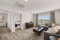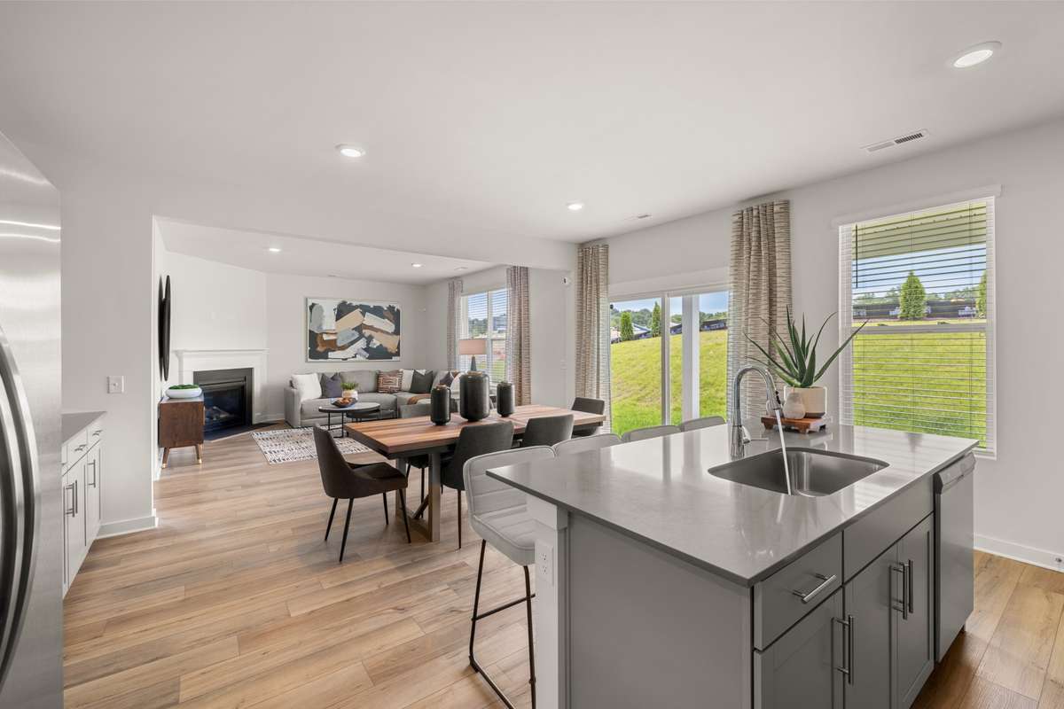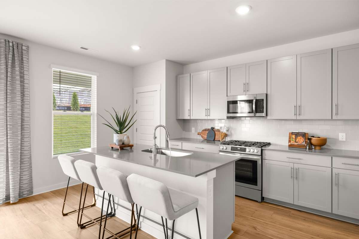 The largest floorplan available in this collection, Kingston offers an open layout among the Great Room, nook and kitchen on the first floor, plus a flex space and a fifth bedroom perfect for overnight guests. Upstairs are four more bedrooms, including the owner’s suite, and a loft for additional living space. Completing the home is a versatile three- car garage. * Images from a furnished model of this home. Actual configuration and features may vary.