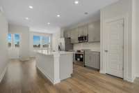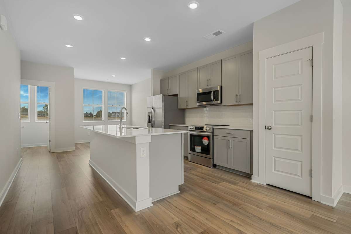 LOT # 1050 - Gatlinburg. Upon entry into this new three- story townhome is a convenient two- car garage for storage space. On the second floor is the main living area, featuring an expansive Great Room with direct access to a modern kitchen and dining area. Residing on the top level are two bedroom suites situated at opposite ends of the home to grant privacy, both of which feature attached bathrooms for enhanced livability.