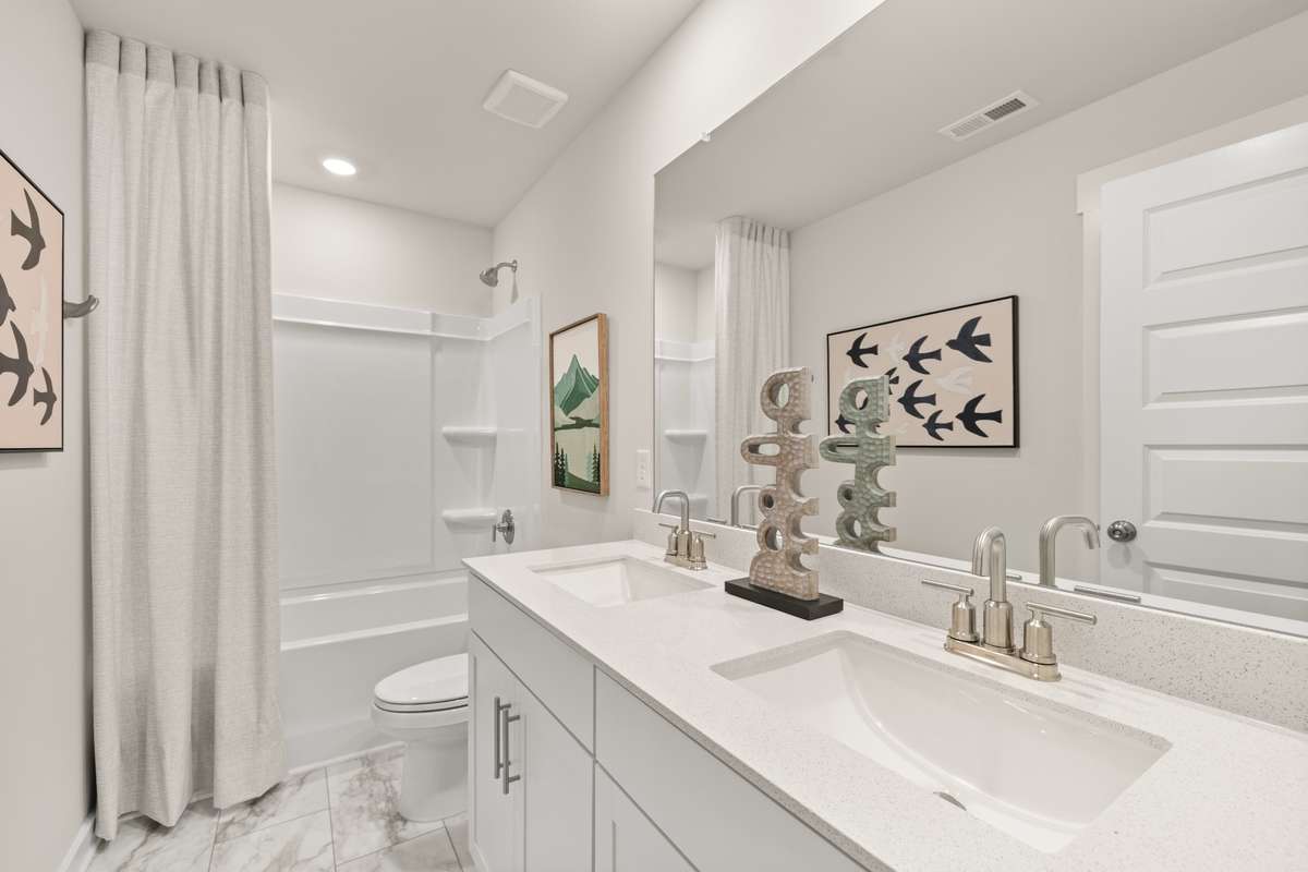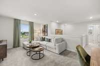 LOT # 59 - Laurel floorplan. This spacious and modern two- story home is ready for various lifestyles. A convenient study and bedroom are located off the foyer, leading to a flexible open- concept layout shared between the kitchen, dining area and family room. A versatile loft provides a shared living space upstairs, perfectly placed near four bedrooms, including the luxurious owner’s suite with a spa- inspired bathroom and dual walk- in closets for growing wardrobes. * Images from a furnished model of this home. Actual configuration and features may vary.