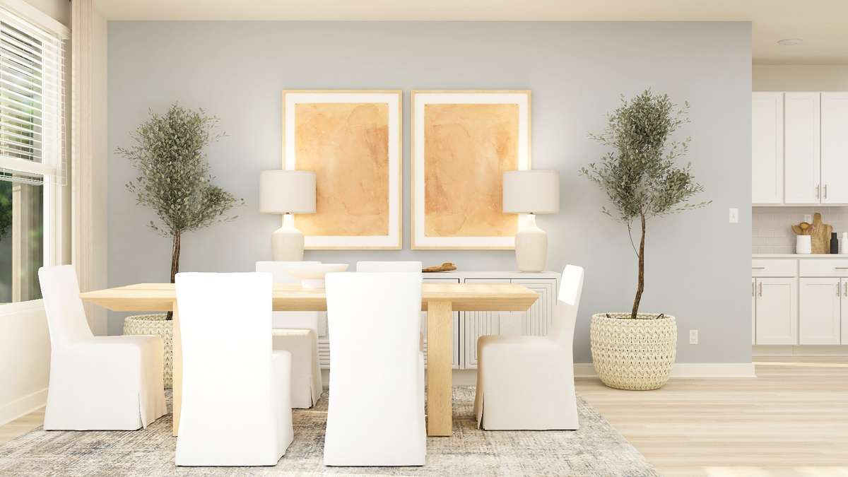 LOT # 48 - Chestnut floorplan. With fantastic features including a mudroom near the garage entry, this single- level home boasts a low- maintenance layout designed for modern lifestyles. Two bedrooms are located off the foyer, leading to an open- concept floorplan with convenient access to a covered patio, ready for seamless entertaining and multitasking. The luxe owner’s suite is tucked away at the back of the home, complete with a spa- inspired bathroom and generous walk- in closet. * Images shown are from a nearby Chestnut in the community. Actual configuration and features may vary.