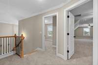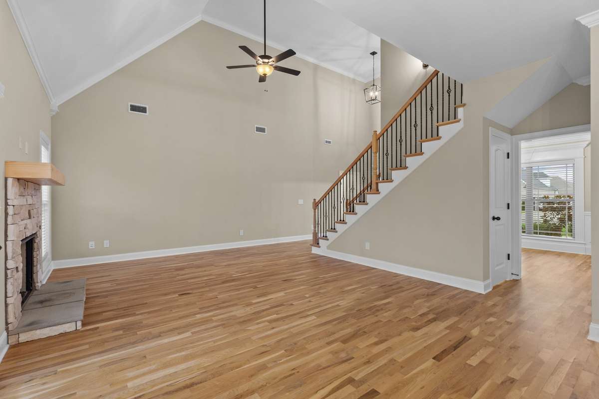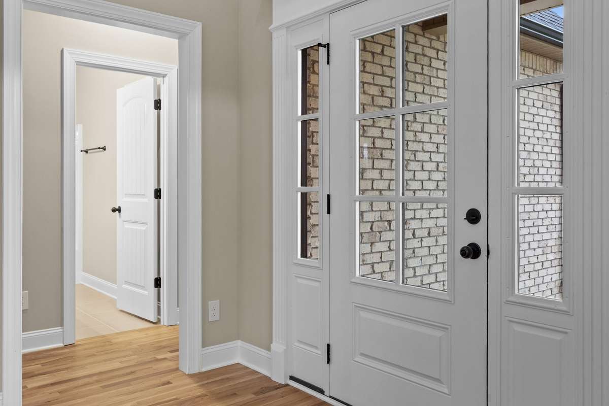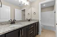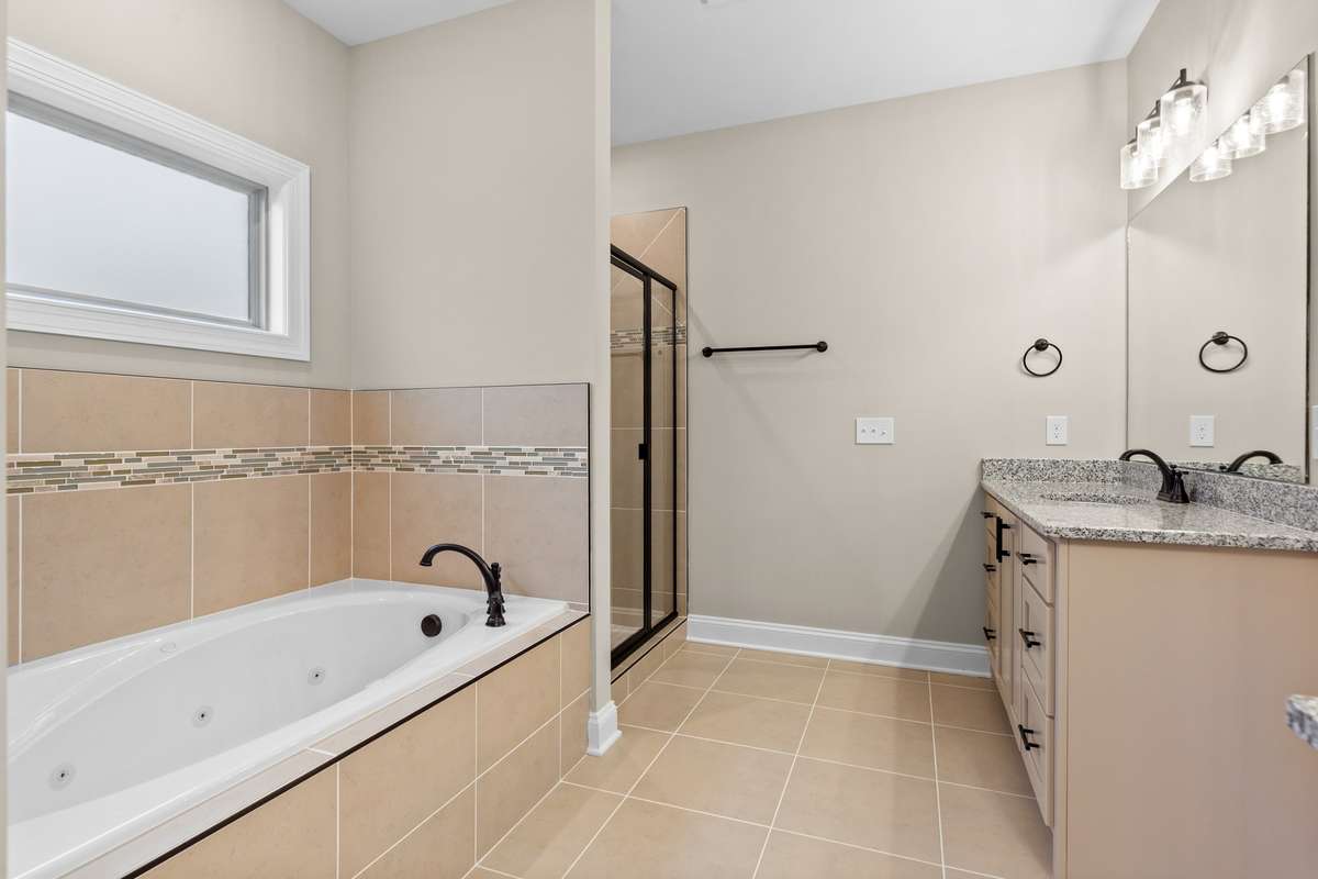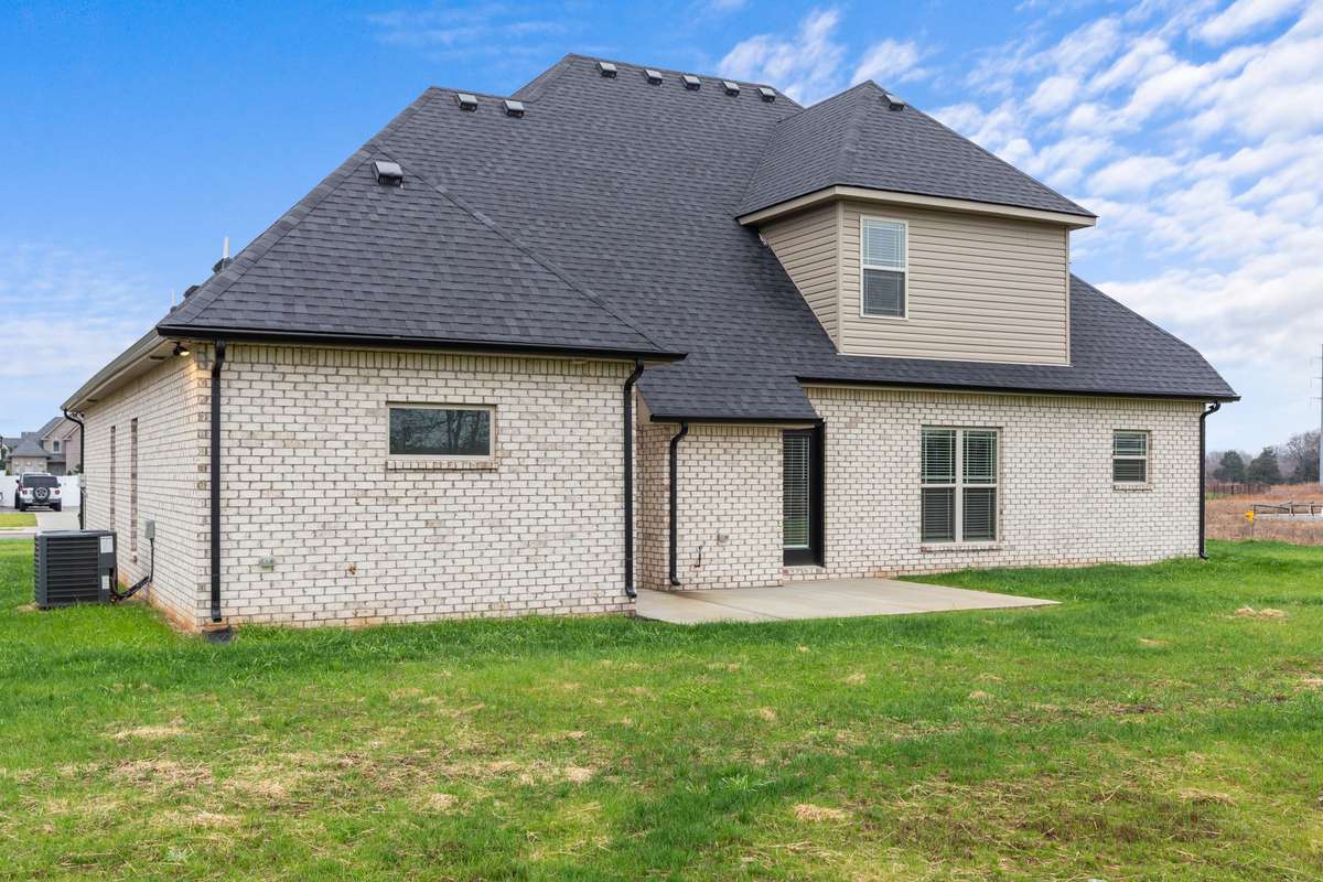 Only one year old and move- in ready. This 4 bedroom, 3 full bath home features 2 bedrooms on the main level and 2 bedrooms upstairs, plus a spacious bonus room with wet bar. Interior upgrades include custom cabinetry, sand- and- finish hardwood floors, open oak tread stairs, an open- concept living area with vaulted ceiling, and a separate dining/ office space. - stainless steel appliances, granite countertops throughout, tile backsplash, and abundant storage. All wet areas include tile flooring. The main suite features two vanities, a jetted tub, and a separate tiled shower. - Additional highlights include a 3- car garage, concrete patio for entertaining, and a nice large lot with some trees lining the back property line, providing some added privacy. Located in the desirable Walnut Grove Farms community.