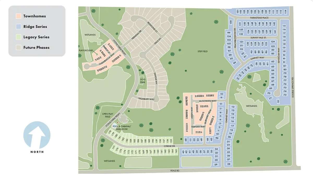 From Nashville, take I-24 East, then US-231 South. Turn right on S Rutherford Blvd, then right on Bradyville Pike. Turn left on Veals Rd, then left on Garnet Way—the community is straight ahead.