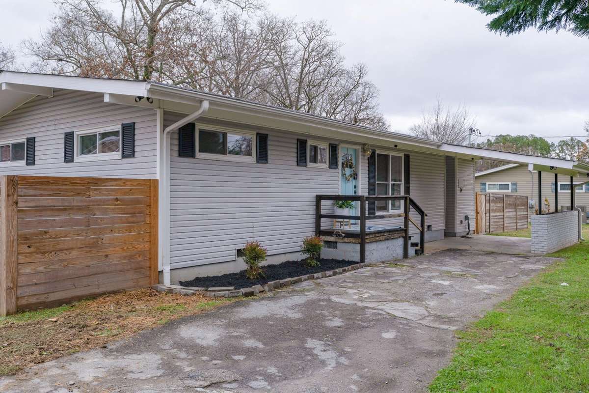 One Level Living in Hixson! Updated, 3 bedroom, 1 bath home on a level, . 37 +/ - acre lot with a recently fenced back yard, a carport with EV charger and storage or workshop space, plus additional off- street parking approximately 15 minutes from downtown Chattanooga. The home also boasts hardwood and tile floors, crown moldings, multiple ceiling fans, recessed lighting, vinyl windows, HVAC replaced in the last 2 years and more! The floor plans features a living/ dining combo with a vaulted and beamed ceiling, a kitchen with quartz countertops, subway tile backsplash, stainless appliances, laundry closet and a side door with easy access to the carport. There are 3 bedrooms, one of which has a sliding glass door to the rear deck and back yard, and a full hall bath with a tub/ shower with tile surround. All of this, and you are super- convenient to schools, shopping, restaurants and medical facilities, so please call for more information and to schedule your private showing today. Information is deemed reliable but not guaranteed. Buyer to verify any and all information they deem important.