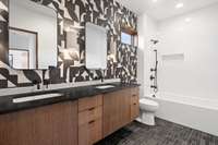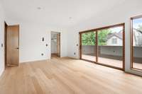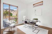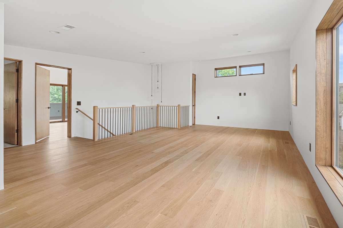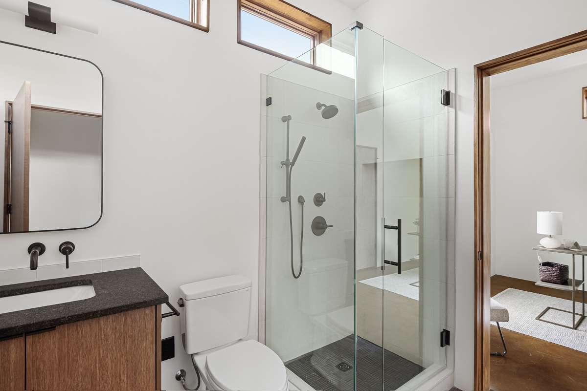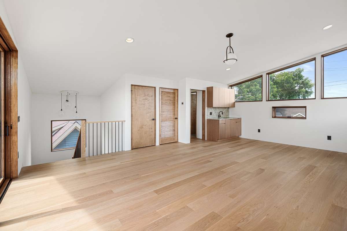 The main residence features 4 bedrooms, including a spacious second- floor primary suite, plus a third- floor flex space with a wet bar, full bath, and a terrace offering views of downtown Nashville. High- end finishes run throughout, including white oak flooring, custom cabinetry, polished concrete, and floor- to- ceiling Pella windows and doors.