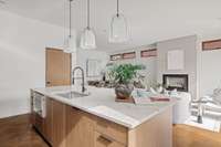 The guest house includes a full kitchen, bedroom, bathroom, and a bonus space that works perfectly as a home office, studio, or gym. The outdoor layout is built for entertaining, with a private garden courtyard, pool, and multiple gathering areas.