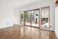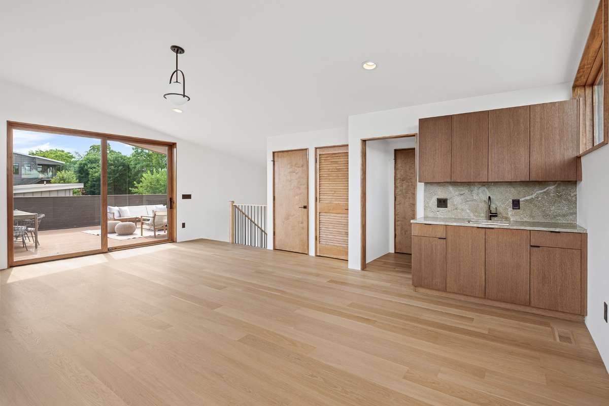 The main residence features 4 bedrooms, including a spacious second- floor primary suite, plus a third- floor flex space with a wet bar, full bath, and a terrace offering views of downtown Nashville. High- end finishes run throughout, including white oak flooring, custom cabinetry, polished concrete, and floor- to- ceiling Pella windows and doors.