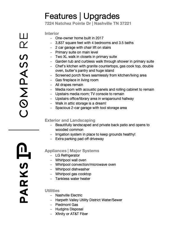 From Nashville, take I-40 west to Exit 192 McCrory Ln. Turn left at bottom of exit and travel 3.5 miles to Natchez Point. Turn right into subdivision, then first right onto Natchez Point Pl. Home will be directly in front on you at end of street.
