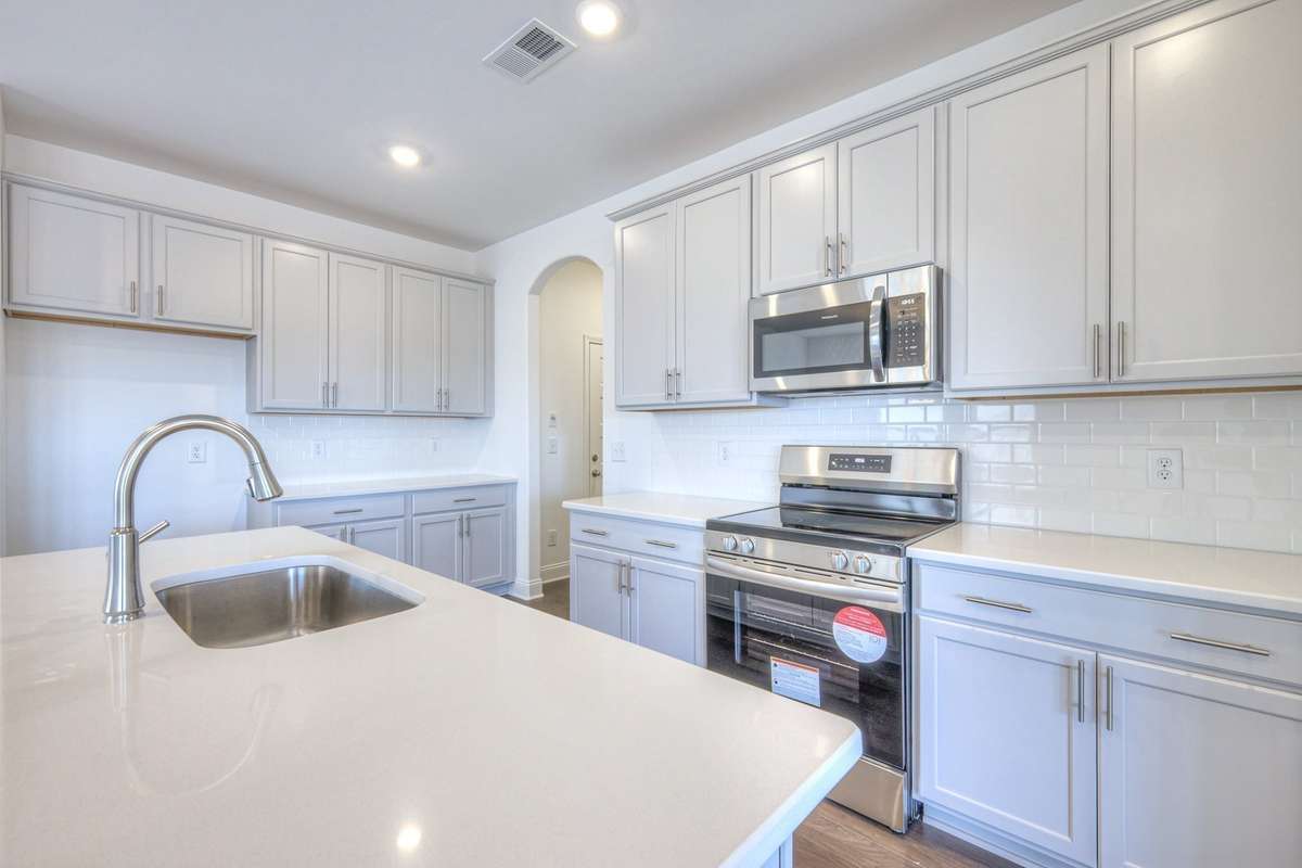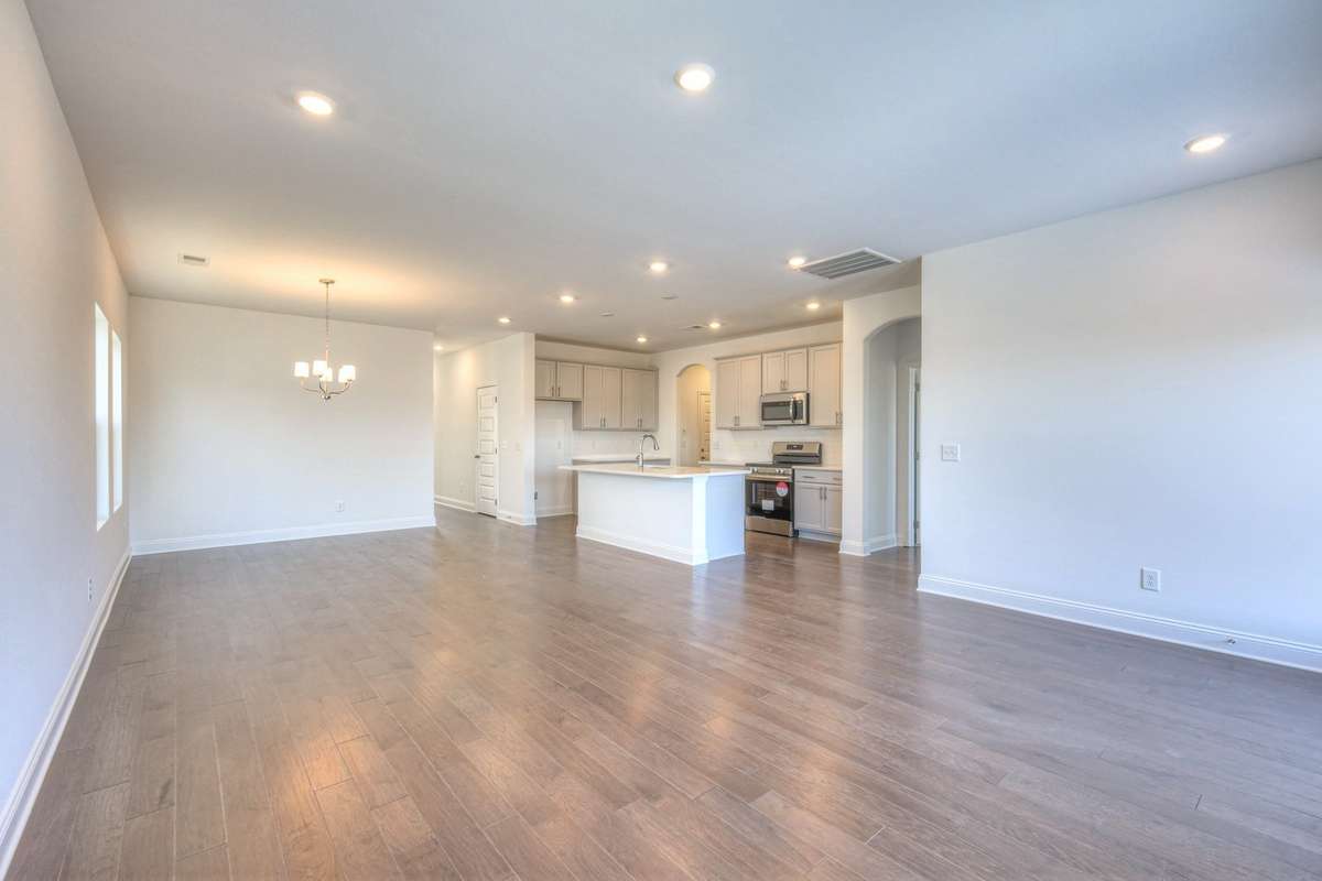 The spacious first- floor Owner’s Suite features a luxurious 7' tiled shower with a frameless glass door, creating a spa- like retreat. The open- concept main living area is ideal for entertaining, showcasing an expansive kitchen with abundant counter space that flows seamlessly into the large great room.