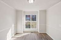 Charming 2- story 3- bedroom home features finished wood floors and an open layout perfect for everyday living and entertaining. The kitchen offers ample cabinetry and counter space, flowing seamlessly into the dining and living areas.