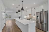 Location, location, location! City Vista is an exciting new urban neighborhood just minutes from the new East Bank, River North, Oracle’s future world HQ, future new TPAC, the new Titans stadium, Top Golf, and all your favorite East Nashville and Downtown spots. And only a few miles to top employers like Vanderbilt, St. Thomas, HCA, Amazon, Asurion, Bridgestone, Pinnacle, and many more. Plus, the City Vista neighborhood design includes a swimming pool, fitness center, and open spaces with sidewalks throughout, creating a place with true community for your next home. Tremendous value in Nashville’s newest hotspot. This spacious, brand new four- bedroom townhome ( or three- bedroom with home office) with modern finishes, two- car garage, and huge rooftop terrace has it all! Your new home at City Vista will definitely be where your friends and family gather this year! The main level of this amazing home is perfect for entertaining, with an enormous kitchen island and gourmet kitchen features, ample dining space with a wall of windows, and a spacious family room with a modern fireplace. This home includes luxurious features at every turn, with hard surface LVP flooring throughout, and on all stair treads, designer ceramic tile bathrooms, stylish quartz countertops, wood shelving in all closets, and so much more. Come out and take a sneak peak of our brand- new model home today!