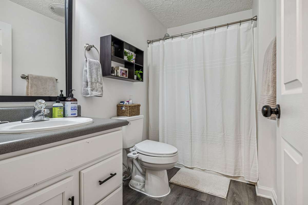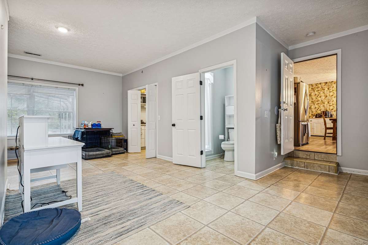The primary suite has a walk in closet and en suite bathroom with separate shower and bathtub. The additional bedrooms are also generously sized and share a full bathroom in the hallway.