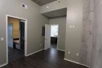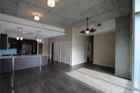 Unit 807 is an industrial style, open concept apartment in the Gulch. With two bedrooms and one bathroom, it has the perfect amount of space for one or two people. In addition to beautiful floor to ceiling windows, there is a small balcony off of the living room. There’s also a utility closet with space for washer and dryer in unit. In terms of amenities, Terrazzo offers a spacious lounge and fitness center on the 6th floor, which includes a pool. The building is monitored by security, and a concierge is available in the lobby to meet the needs of the residents. The apartment comes with two parking spaces in the residential section of the underground parking garage.