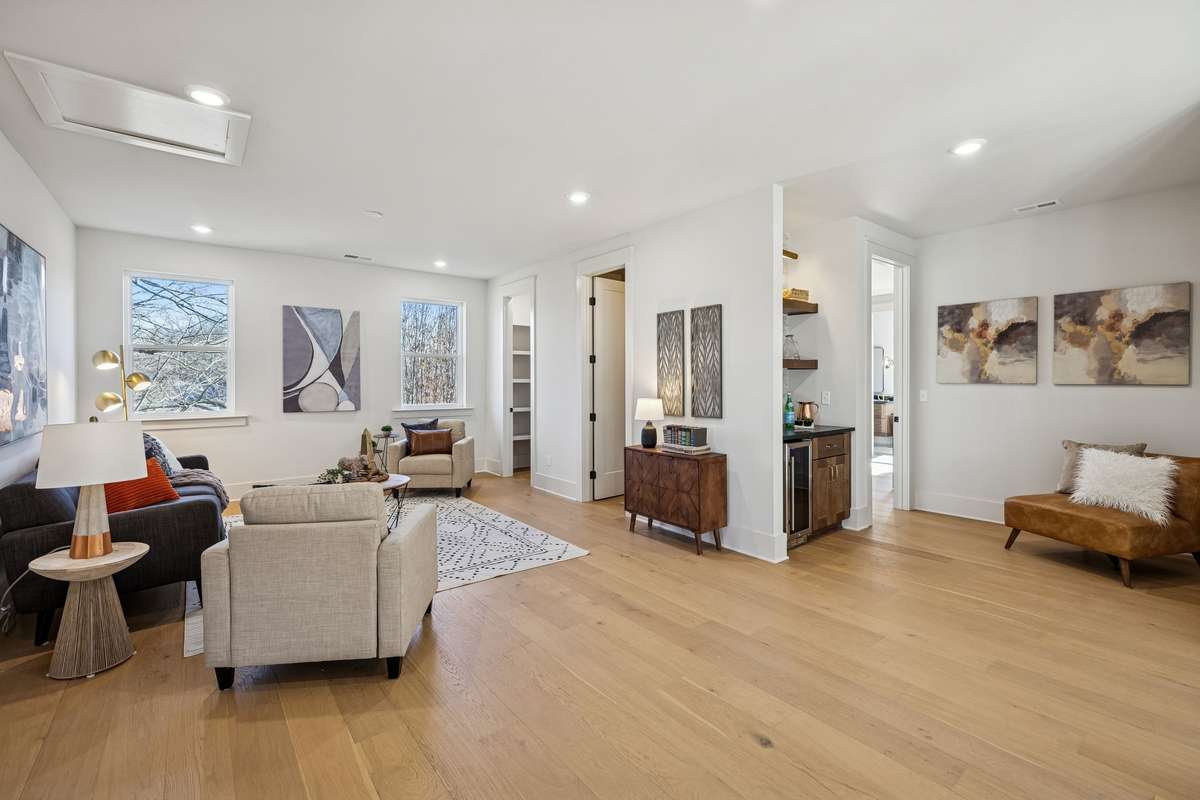 Welcome to an incredibly laid out home with Luxury finishes in the fantastic neighborhood of Whispering Hills. Conveniently located about 15 minutes from Downtown Nashville, just outside of Brentwood and zoned for Crieve Hall Elementary. The layout is perfect for hosting with a large open living space, tall ceilings, and a large flat yard that is perfect for any buyer. Luxurious finishes include quartz countertops, hardwood flooring throughout all the main living areas, led accent lighting, in- ceiling speakers, and more! The showstopper on this is the amazing large and flat black yard ready for all your outdoor activities!