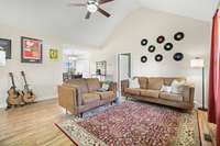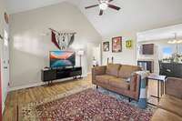 Step inside to a bright, airy living room with vaulted ceilings that create an instant feeling of openness. The eat- in kitchen features stainless steel appliances and plenty of workspace, making daily living and entertaining effortless. Each bedroom offers comfort and function, with built- in closet systems that maximize storage and keep everything organized. The spacious primary suite provides a peaceful retreat with its generous proportions and natural light.