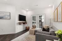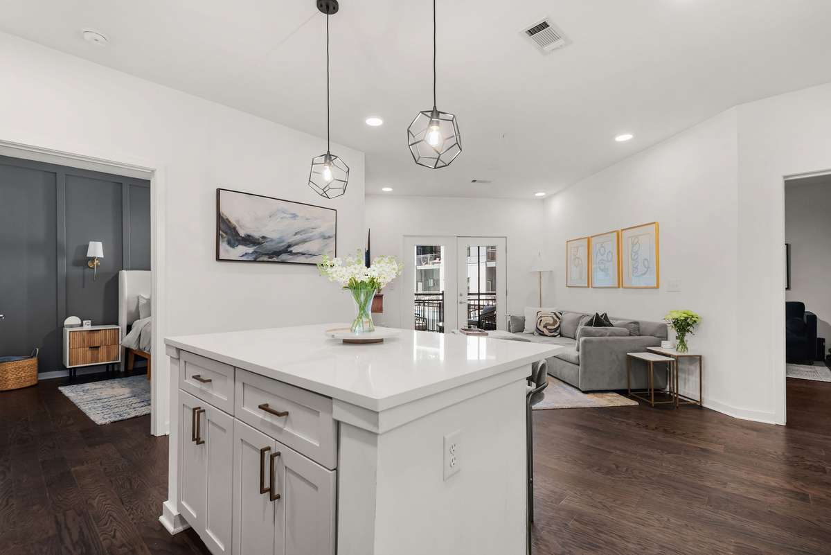 Spacious 2 bedroom corner unit with fantastic pool views located in The Nations and within walking distance to its best restaurants, bars, gyms and retail. The interior features an open- concept living space, shiplap accents, great natural light and an island kitchen equipped with great storage ( including a pantry!) . Each bedroom features its own en- suite full bath and walk- in closet, providing ultimate privacy, space and comfort. Enjoy the outdoors year- round on your private, covered patio that is large enough for grills, dining sets and lounge seating, all with a beautiful view of the resort style pool. Building amenities include a pool, gym, pet spa, lounge and 2 assigned parking spots conveniently located just outside the building entrance next to the unit. Seller is on the wait list for a rental permit. Preferred lender, Austin Wyrick w/ Flat Branch Home Loans, offering a 1% closing costs credit. Seller happy to help with closing costs and/ or rate buy down!