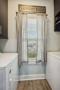 The chef- inspired kitchen is the true centerpiece of the home, featuring granite countertops, shaker- style cabinetry, and an elegant Spanish tile backsplash that adds a touch of Old World charm. Whether entertaining guests or enjoying quiet evenings in, this kitchen blends style and functionality effortlessly.