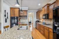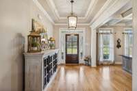 The inviting floorplan features hardwood flooring, vaulted ceilings, granite countertops, and custom built- ins. Enjoy peaceful mornings on the covered front porch and summer days relaxing around the fenced- in in ground pool.