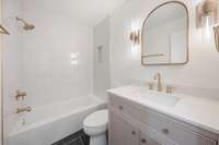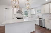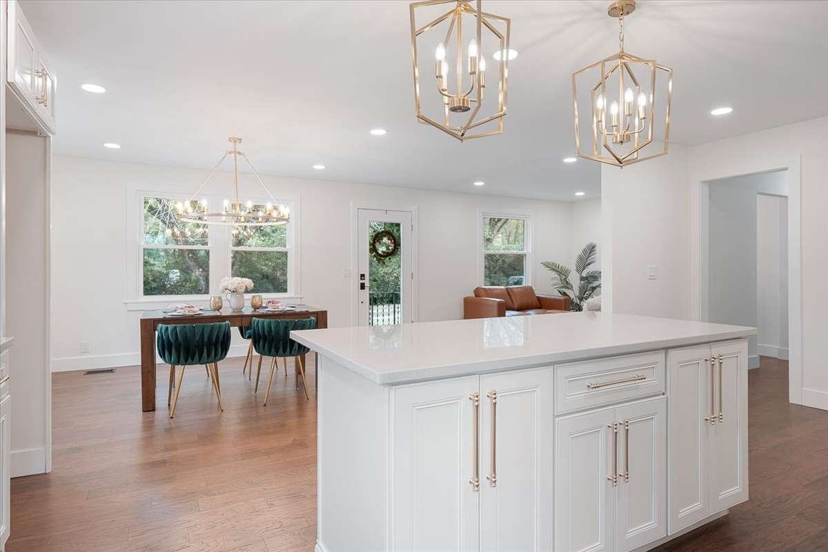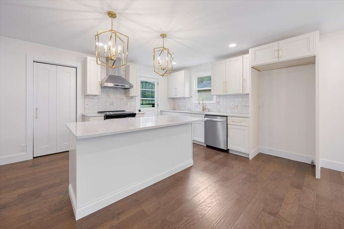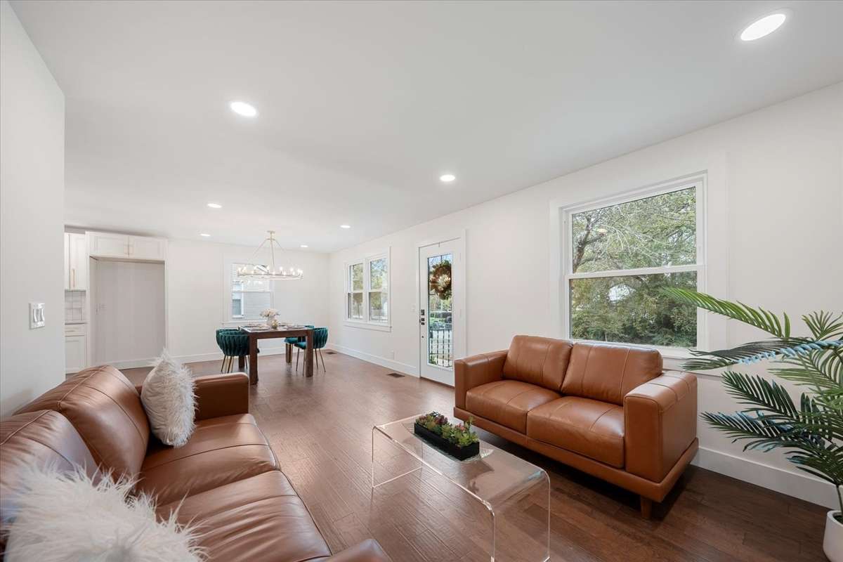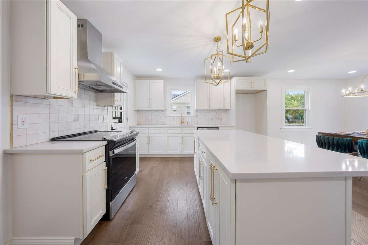 Step inside to find gorgeous wood floors, new energy- efficient windows, and a brand- new roof offering long- term peace of mind. The stunning modern kitchen features quartz countertops, sleek cabinetry, and brand- new appliances, all flowing seamlessly into the open- concept living and dining area, perfect for hosting and everyday living.