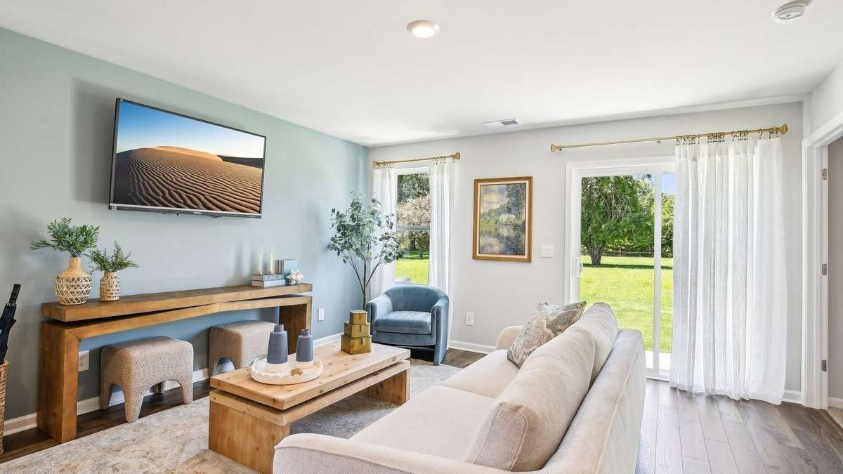 TREE LINE - UP TO $ 7500 towards CLOSING COSTS with use of our preferred lender. The Devon plan is a single- story home offering 3 bedrooms, 2 bathrooms, and 1, 281 sq. ft. of living space. Its open- concept layout seamlessly connects the kitchen, dining, and living areas, creating an inviting atmosphere ideal for both daily living and entertaining. The modern kitchen overlooks the dining area & living room, allowing for easy communication or watching sports while preparing meals. The primary bedroom is at the rear of the home, providing a private retreat separate from the secondary bedrooms. Each Devon home is equipped with D. R. Horton’s Home is Connected® package, a suite of smart home features that enable homeowners to monitor and control their home from anywhere.