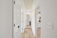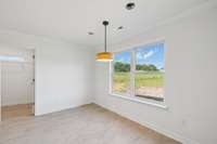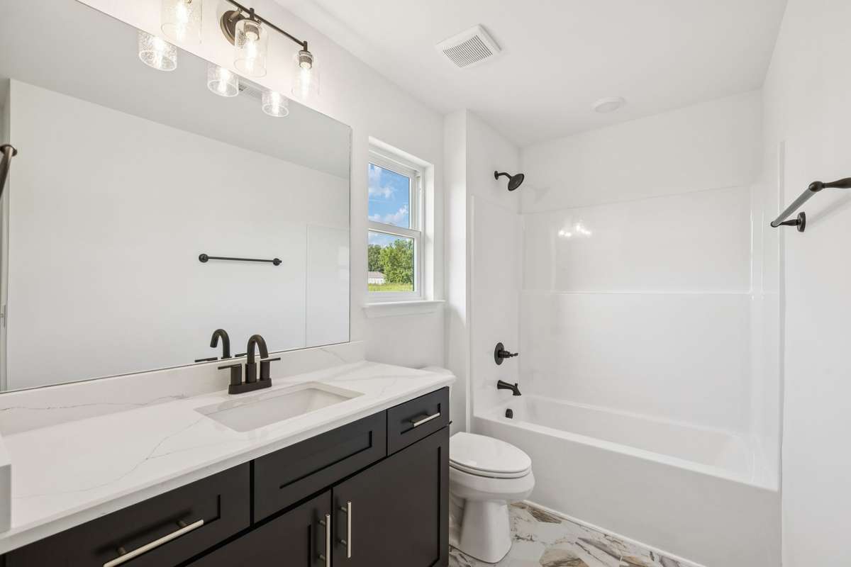 Brand new home on large lot in neighborhood with large lots which allows for privacy. The home features a brick front, black edged windows, 3/ 4 glass French front door, BI blinds in back door, large covered back porch, white cabinets with brushed gold handles and quartz tops, gorgeous designer brushed gold kitchen faucet, large 06x06 flex room for pantry or office space, top of the line 7" LVP flooring, mosaic tile baths and utility room flooring, large tile master shower with niche and penny tile floor, black bathroom cabinets with quartz tops, upscale lighting, large bonus room, pedestrian door to garage. Andersen single hung windows, interior door levers, farmhouse sink, quartz tops in baths, upgraded insulated garage door with pedestrian entry, linen closet in both baths, raised height bath cabinets, edgeless shower door, under cabinet lighting in kitchen. Quality construction.