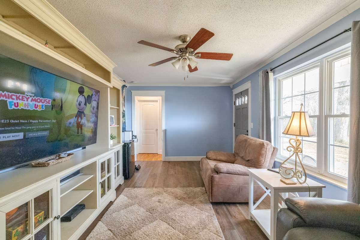 Step inside to find a spacious family/ living room perfect for hosting family gatherings. The airy gourmet kitchen features solid surface countertops and stainless steel appliances, flowing effortlessly into the dining area, which is perfect for entertaining friends and family, complete with the cozy ambiance of a wood- burning fireplace.
