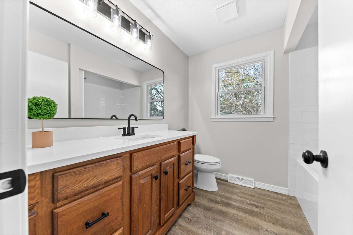 Newly remodeled home! Upstairs you have 3 beds, 2 full baths - 1 with new tub w/ tile surround and 1 with shower, quartz countertops, new faucets & fixtures, large living room and kitchen with dining area with all new stainless steel appliances; downstairs you have 1 oversized bedroom with wood fireplace, 1 bath with tub, new faucets & fixtures, large bonus room, a grand utility room and tons of storage! Laminate flooring, new fixtures, new paint throughout, new windows. HVAC has been serviced, safe room located under the front porch, 1- car garage downstairs, large yard, concrete driveway, all of this is located in a very desirable neighborhood! You really can' t go wrong with this home! Call today for a private tour!