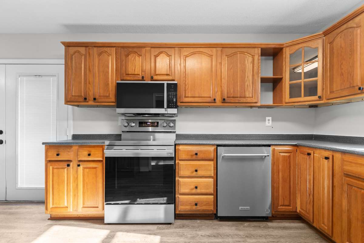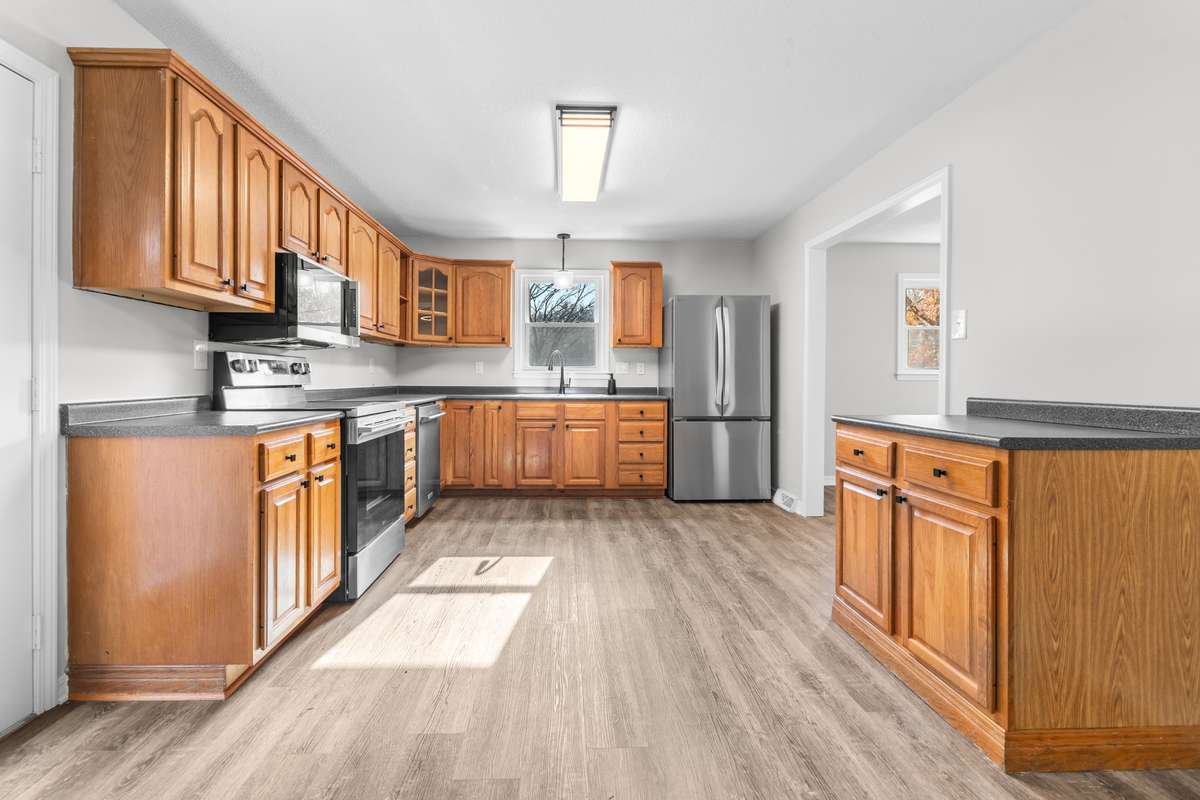 Newly remodeled home! Upstairs you have 3 beds, 2 full baths - 1 with new tub w/ tile surround and 1 with shower, quartz countertops, new faucets & fixtures, large living room and kitchen with dining area with all new stainless steel appliances; downstairs you have 1 oversized bedroom with wood fireplace, 1 bath with tub, new faucets & fixtures, large bonus room, a grand utility room and tons of storage! Laminate flooring, new fixtures, new paint throughout, new windows. HVAC has been serviced, safe room located under the front porch, 1- car garage downstairs, large yard, concrete driveway, all of this is located in a very desirable neighborhood! You really can' t go wrong with this home! Call today for a private tour!