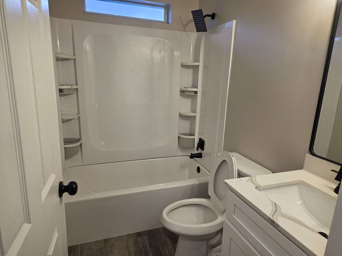 Completely remodeled from top to bottom, this 4- bedroom home delivers space, style, and peace of mind with major upgrades already done. Fresh paint, new flooring, brand- new windows and doors, and updated lighting give the entire home a clean, modern feel the moment you walk in. The main living area features vaulted ceilings, abundant natural light, and a cozy fireplace that anchors the room.