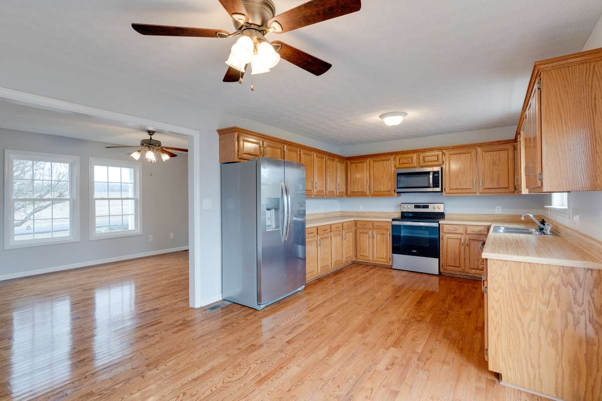 This home is SPARKLING, with fresh paint on walls, ceilings, trim and doors, NEW CARPET in bedrooms, ( REAL hardwood flooring in living areas) . It even has new plugs and switch plates, so the home looks just built! HUGE kitchen with tons of cabinetry, and to top it off - A $ 4, 000 TANKLESS HOT WATER HEATER ( for an endless supply of hot water! ) AND A DETACHED, TWO- CAR GARAGE/ SHOP WITH ELECTRICITY! ! Then there' s a HUGE deck on back, too! ! ALLLLL of this is situated on a 1+ acre lot! ! Better hurry to beat the crowd for this one! ( Roof is also just two years old!)