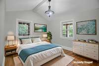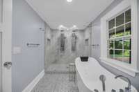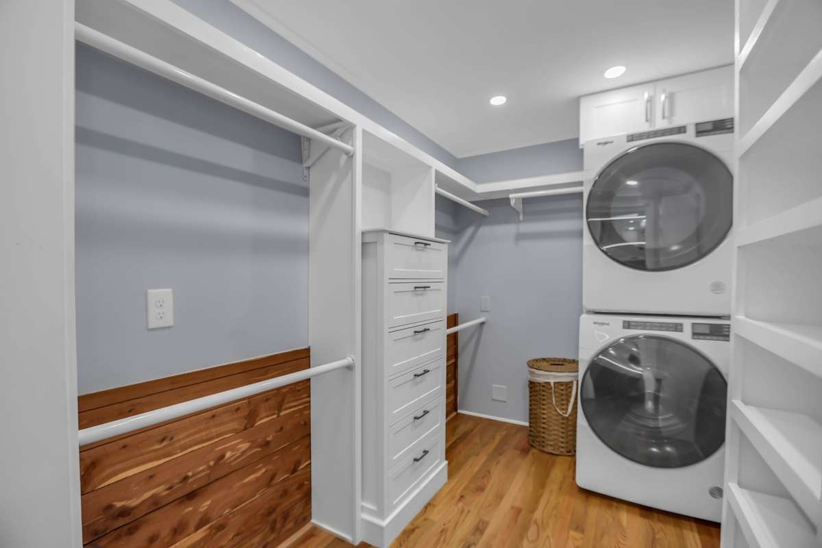 The luxury Master Bedroom Suite has custom His & Her closets, dual shower heads with walk in shower, soothing slipper tub and a double vanity sink providing the ultimate in bathroom amenities. The inviting European kitchen with high end appliances and Italian gas range, tall cabinets, and sleek quartz countertops compliment the entertaining island design.