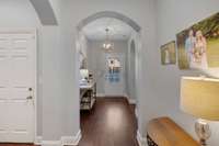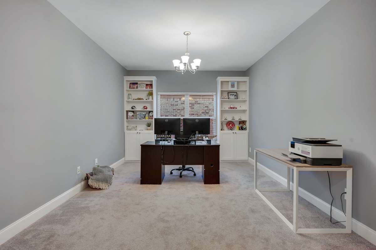 Stunning All Brick One Level Home in Desirable Liberty Creek School Zone | This beautifully crafted all brick and stone residence offers true one- level living with an open, inviting floor plan | Featuring 3 spacious bedrooms, 2 full baths, and a versatile office/ flex space, this home is designed for comfort, style, and functionality | The open living area includes a gas fireplace, seamlessly connecting to the kitchen and dining spaces - - perfect for everyday living and entertaining | The primary suite features a large walk- in closet, dual vanities, separate water closet and an impressive walk- in shower | Enjoy outdoor living year round on the screened in patio, overlooking a large, level fenced backyard ideal for pets, play, and entertaining | Additional highlights include a 2 car garage and zoning for the highly sought- after Liberty Creek Schools | This home truly offers convenience, quality, and exceptional value all on one level | Don’t miss your chance to make it yours!