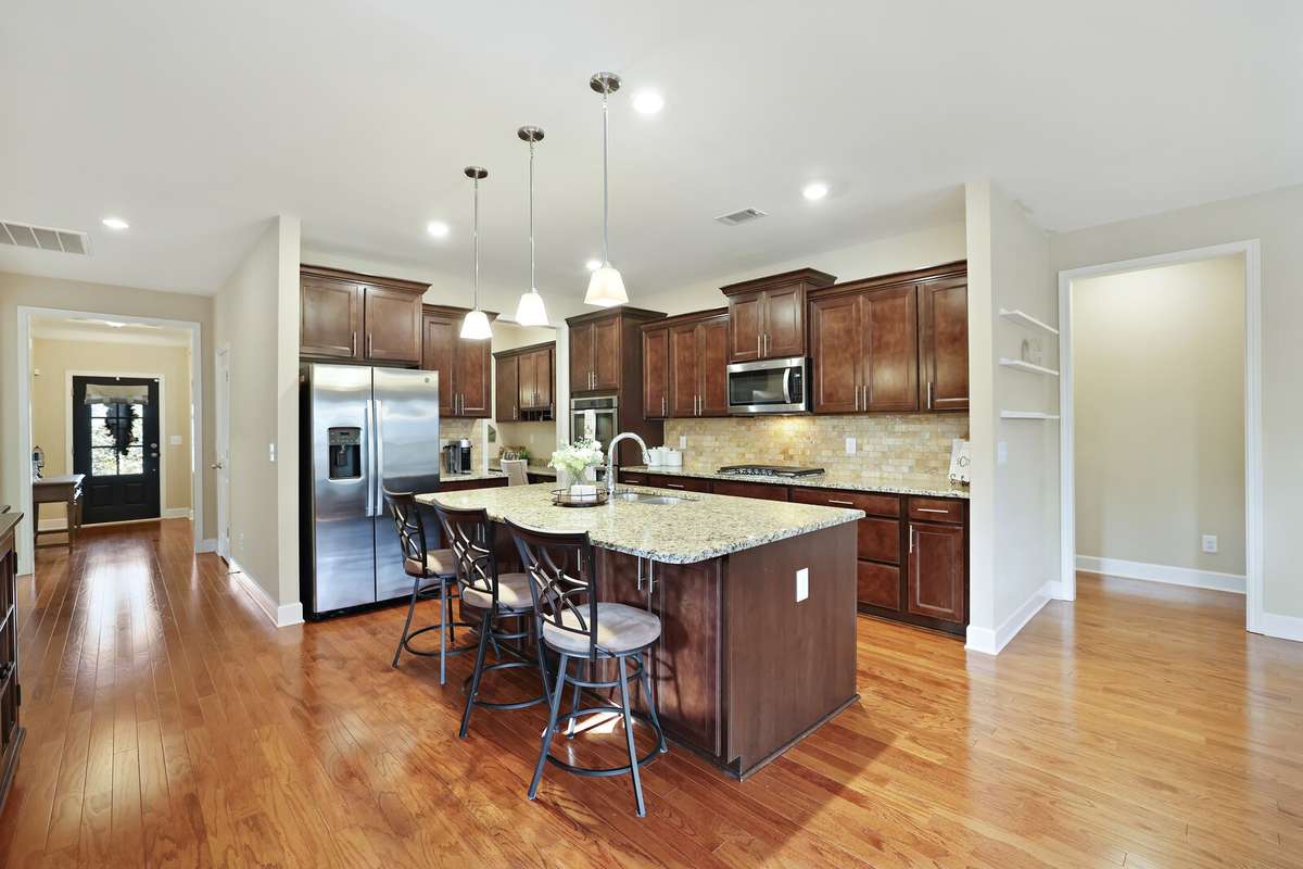 Featuring hardwood floors throughout, granite countertops, and stainless steel appliances, this open- concept layout is perfect for entertaining and filled with abundant natural light.