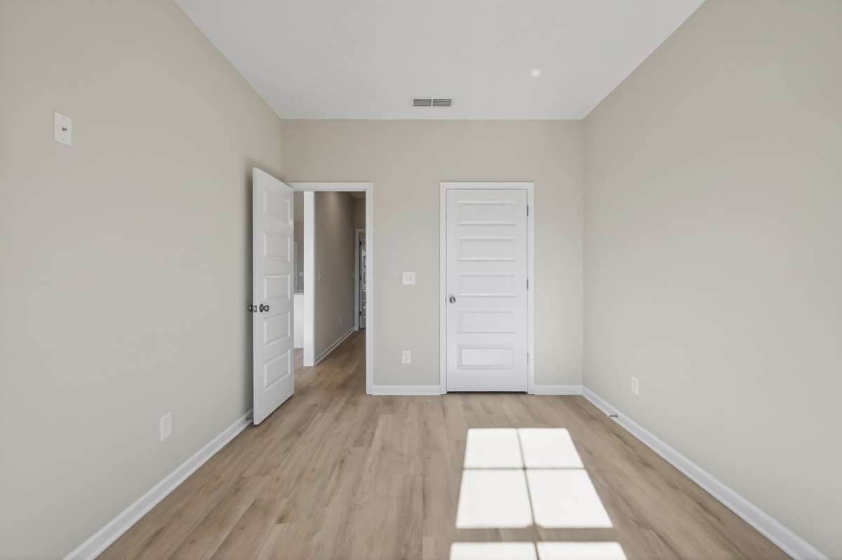 The Harrison Plan – This beautiful ranch- style home offers 3 bedrooms, 2 bathrooms, and a modern, efficient layout. The kitchen features granite countertops and stainless steel appliances ( refrigerator not included) . The 1- car garage includes epoxy floors, adding durability and a polished finish, while a tankless water heater provides on- demand hot water and energy efficiency. The exterior showcases a fully sodded and landscaped front yard, giving the home immediate curb appeal.
