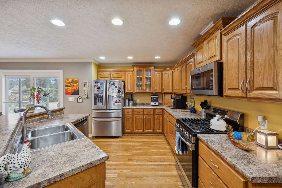 Inside, you’ll love the beautiful hardwood floors flowing throughout the main areas, perfectly complementing the tile shower and whirlpool jetted tub in the primary bath. The open living concept between the Great Room and Kitchen creates a warm, inviting space ideal for everyday living or entertaining.